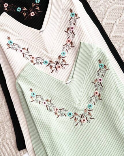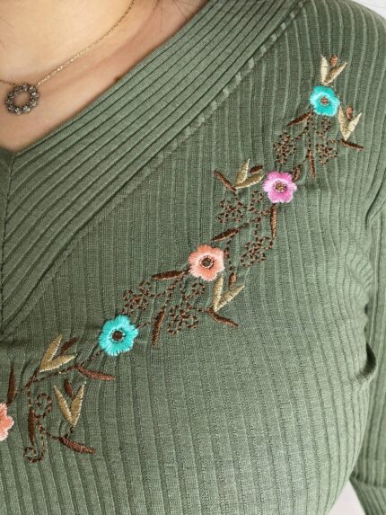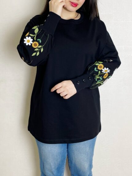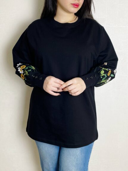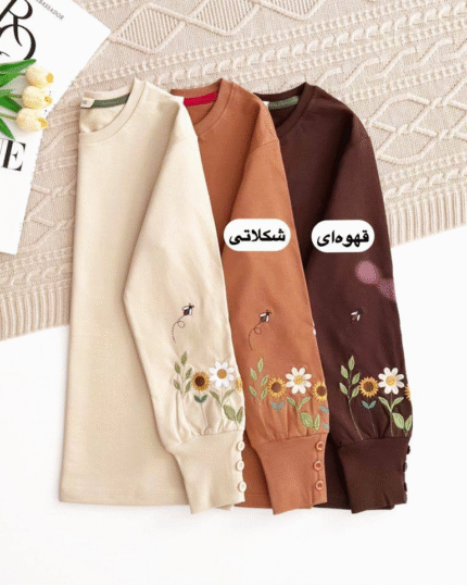بلوز آستین دکمه گلدوزی طناز(سایز بزرگ) کد 593
