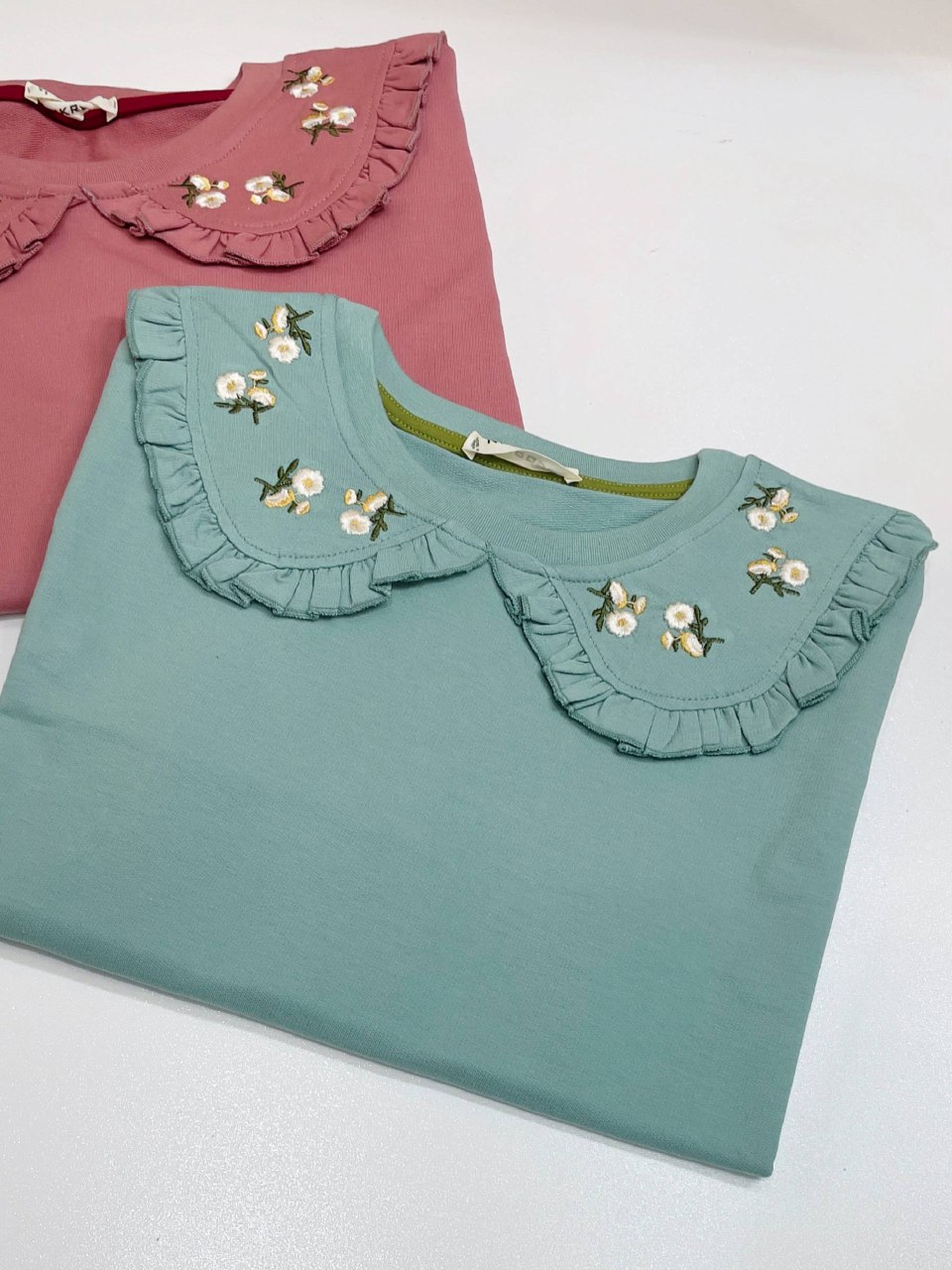 بلوز آستین دکمه گلدوزی پروانه نلین کد 129