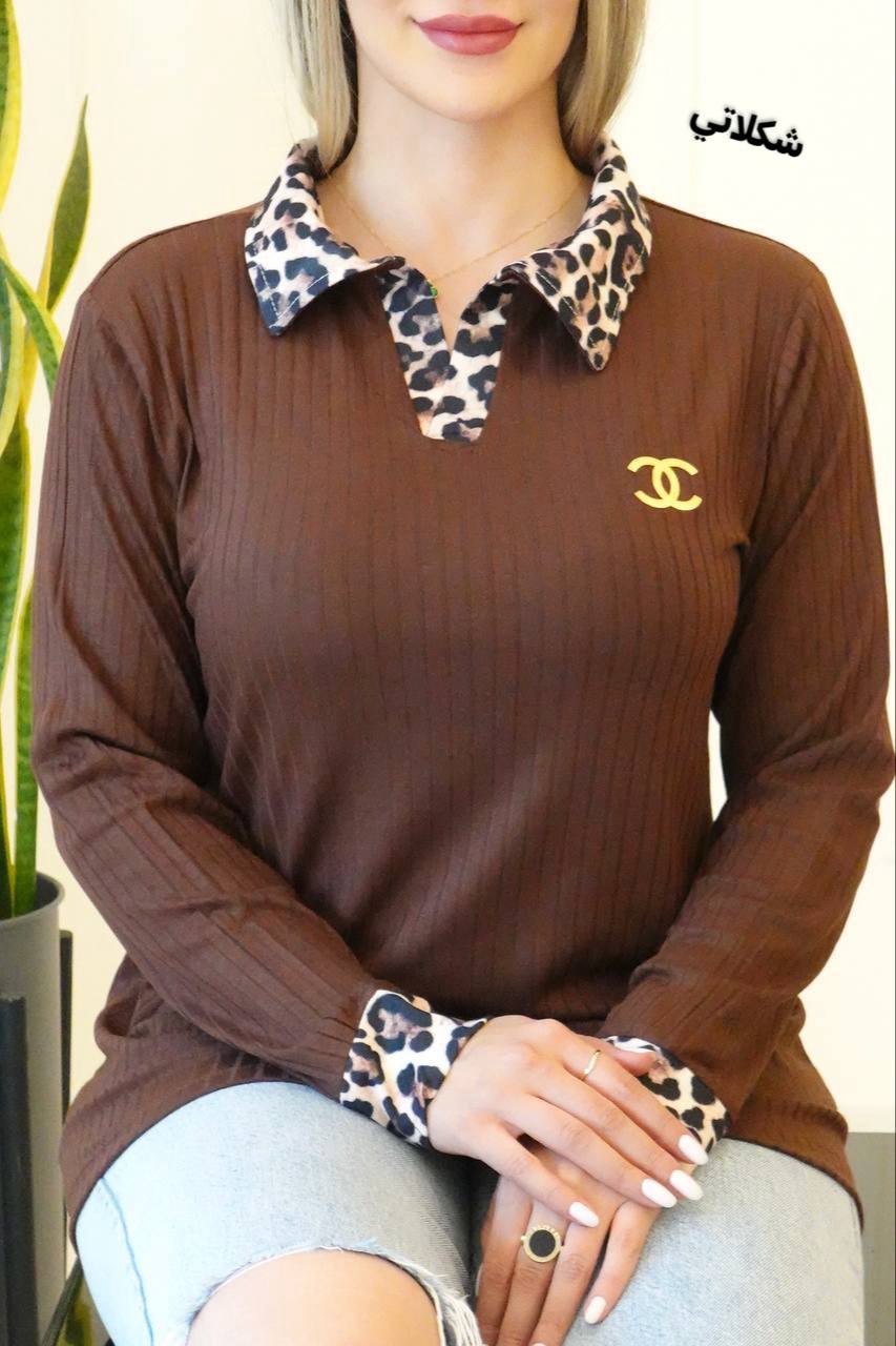 بلوز یقه دار پلنگی کد 488