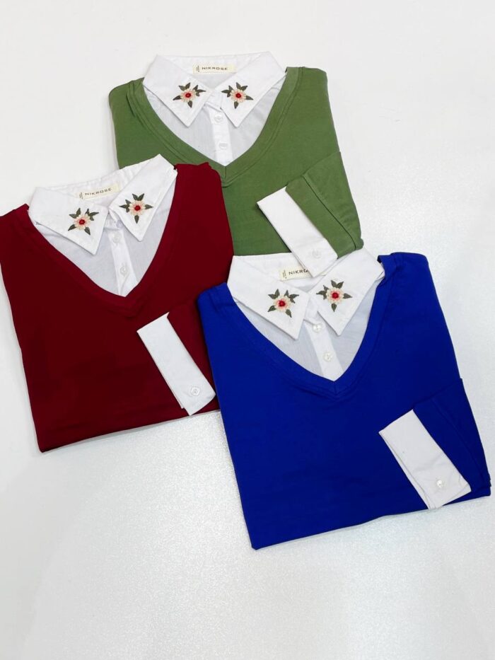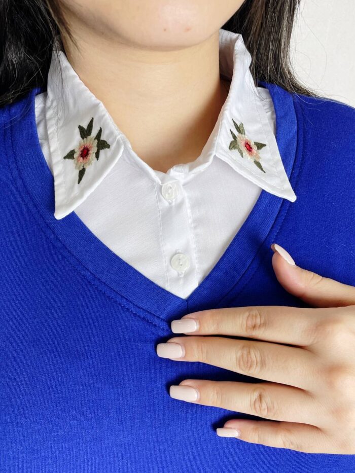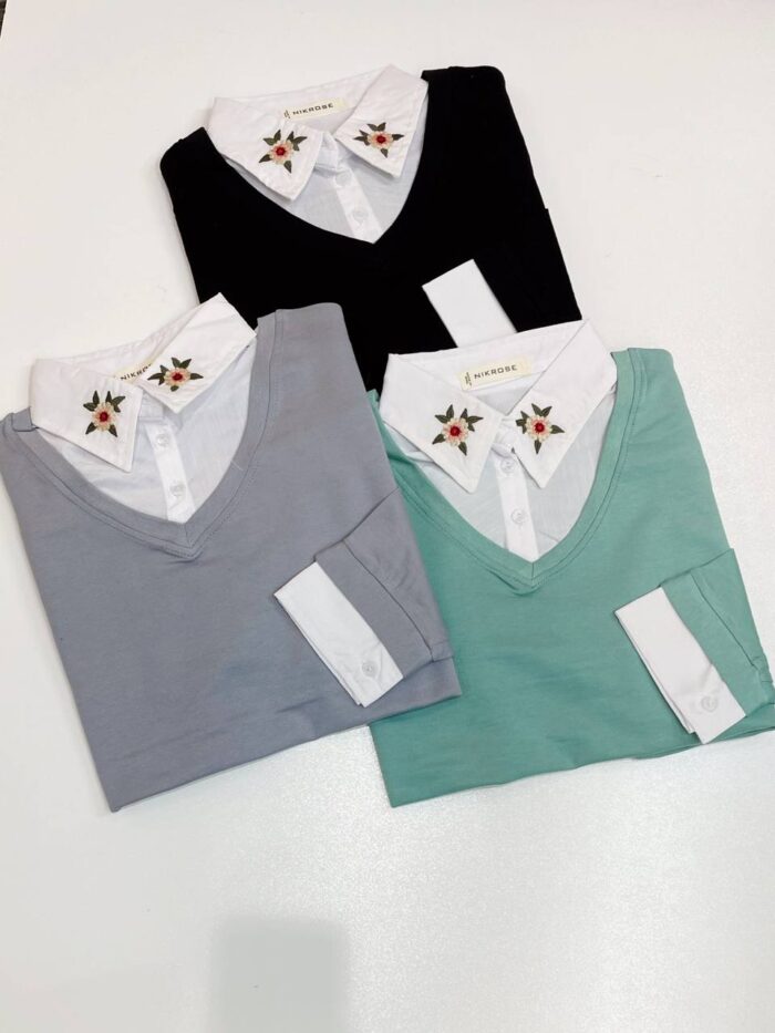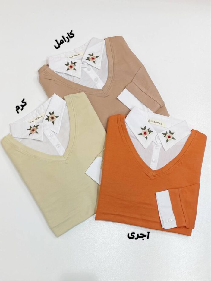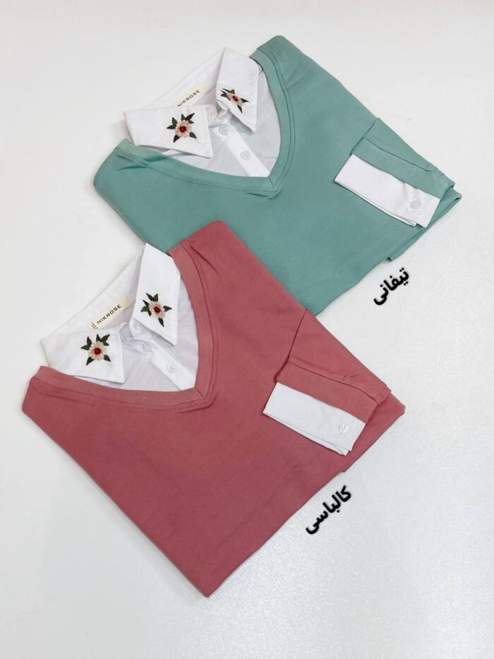 بلوز آستین دکمه گلدوزی پروانه کد73