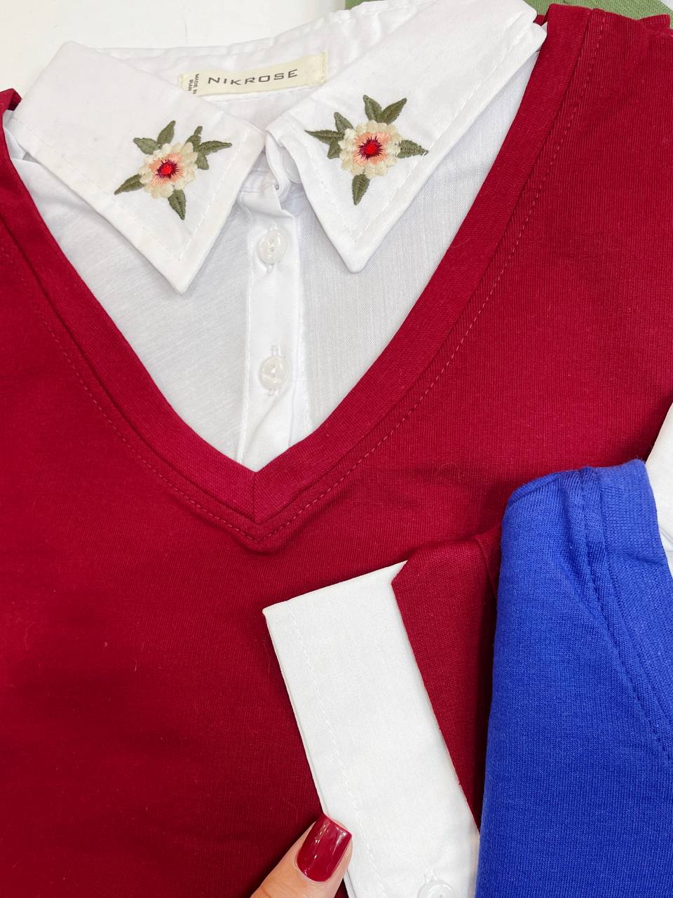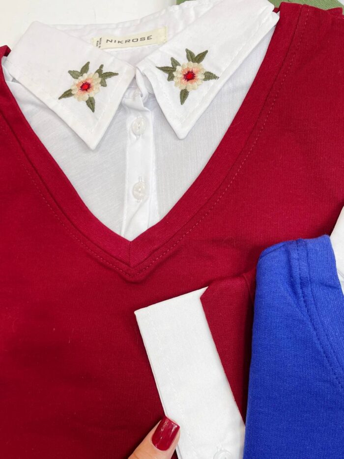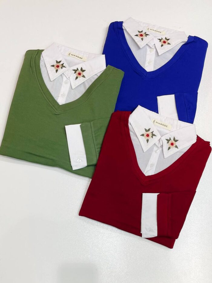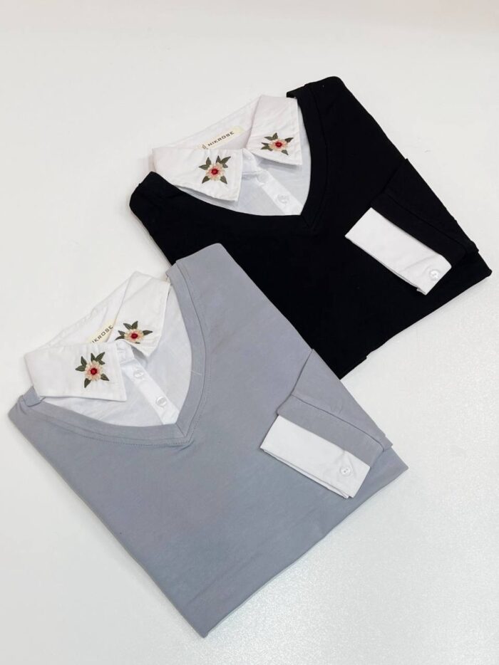 بلوز آستین دکمه گلدوزی پروانه کد73