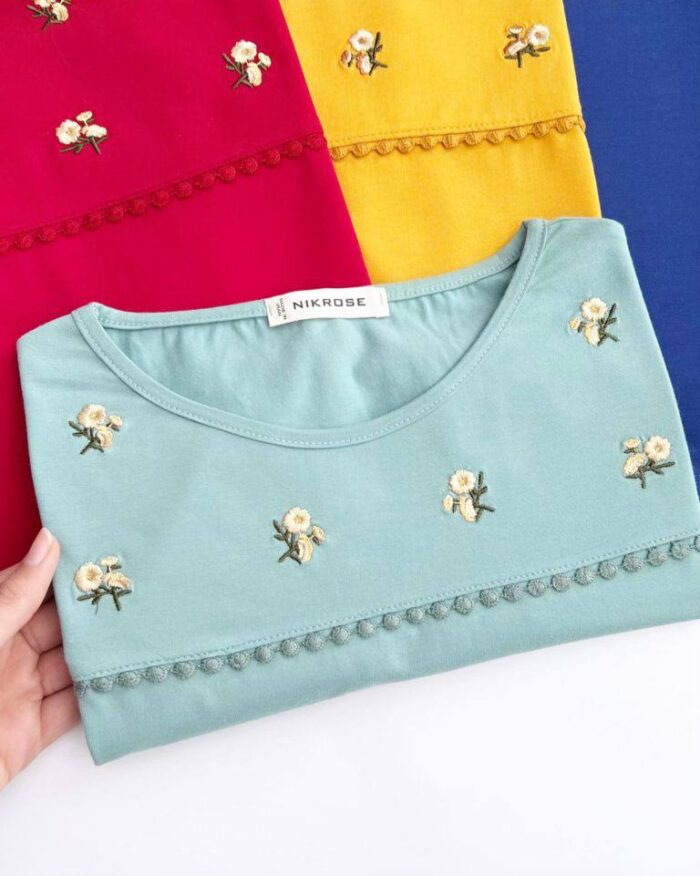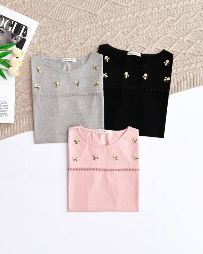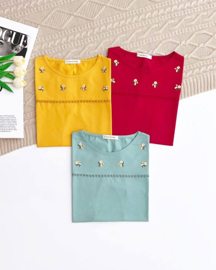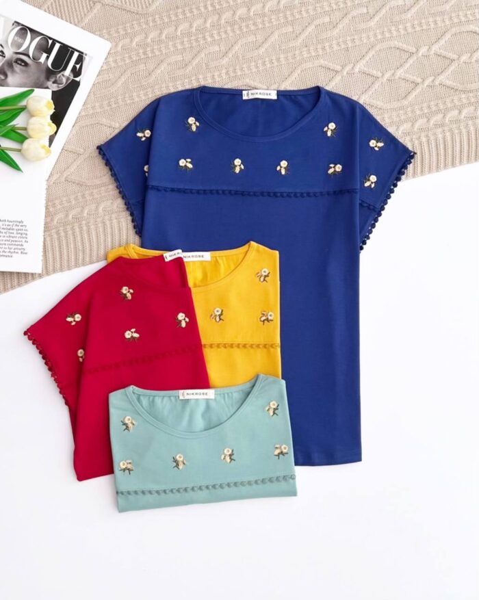 تیشرت گلدوزی قواره دار نیلوفر کد 134