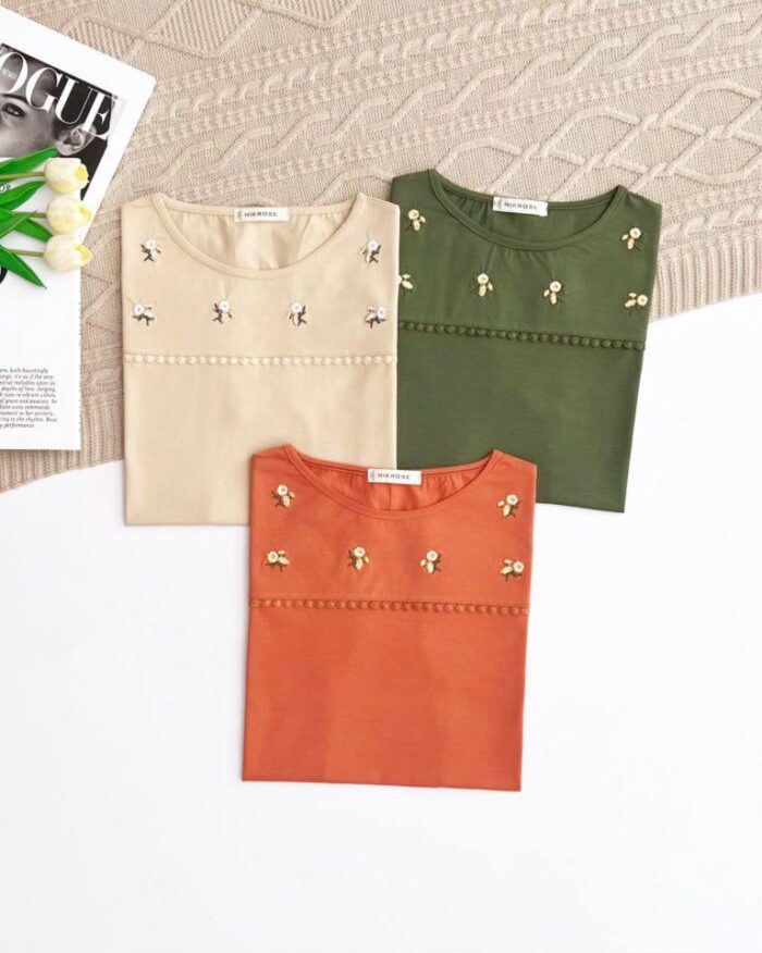 تیشرت قاپکدار گلدوزی پامچال کد 188
