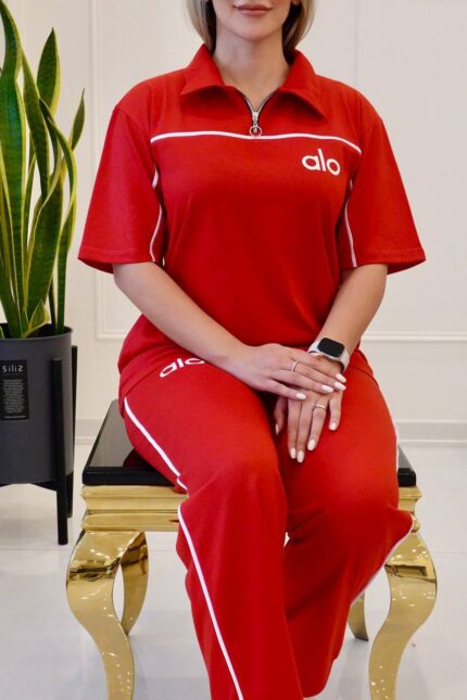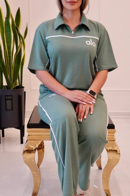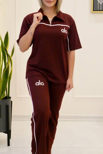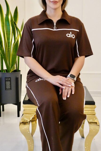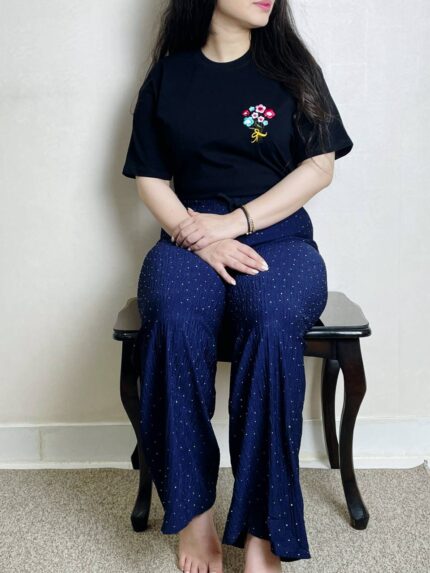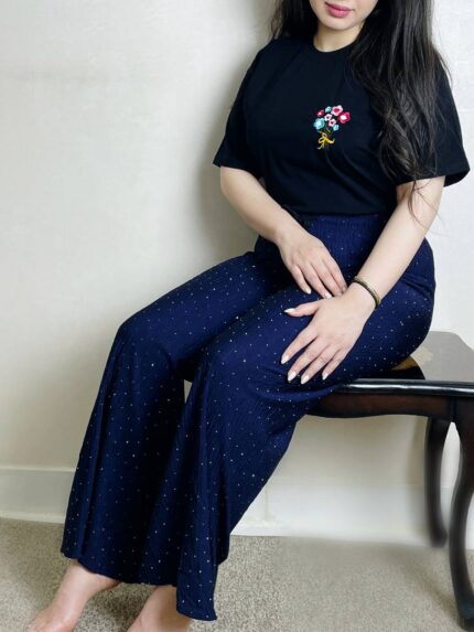 ست گلدوزی تکه دوزی تیشرت و شلوار فندی کد 864